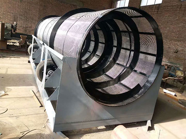 無軸滾筒篩是以傾斜的方式安裝在機架上的,電動機經(jīng)減速機與滾筒裝置通過聯(lián)軸器連接在一起,驅動滾筒裝置繞其軸線轉動。當物料進入滾筒裝置后,由于滾筒裝置的傾斜與轉動,使篩面上的物料翻轉與滾動,使合格物料(篩下產(chǎn)品)經(jīng)滾筒后端底部的出料口排出,不合格的物料(篩上產(chǎn)品)經(jīng)滾筒尾部的排料口排出。由于物料在滾筒內的翻轉、滾動,使卡在篩孔中的物料可被彈出,防止篩孔堵塞。滾筒篩沙機、滾筒篩分機與滾筒篩的原理構造幾乎相同,是人們對它的認識和叫法上存在差異。
