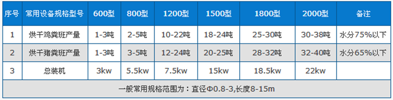 豬糞烘干機技術(shù)參數(shù)