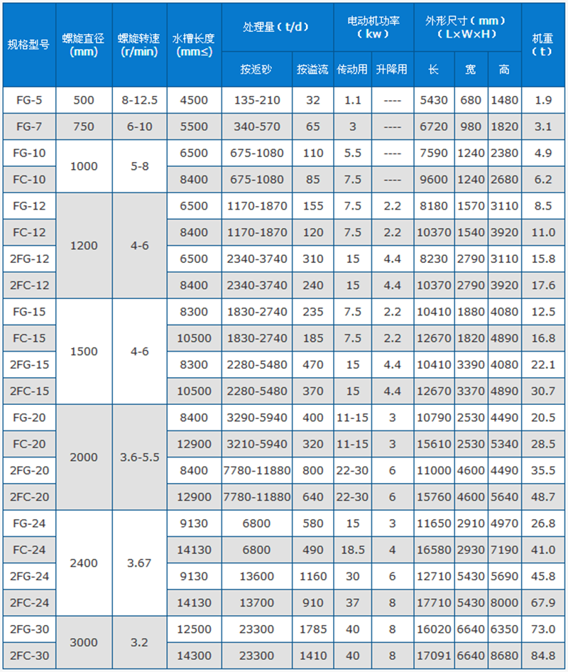 螺旋分級機主要由傳動裝置、螺旋體、槽體、升降機構(gòu)、下部支座(軸瓦)和排礦閥組成。