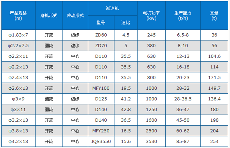 水泥球磨機(jī)技術(shù)參數(shù)